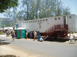 This 40-foot trailer has facilities for men & women.